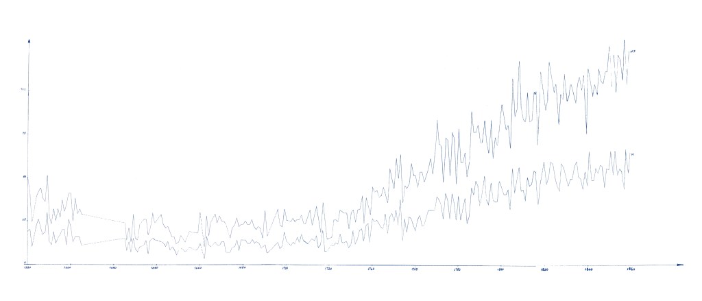Millimetri di pioggia annuali (la prima cifra indica i mm. di pioggia, la seconda l’anno, in grassetto gli estremi minimi e massimi)