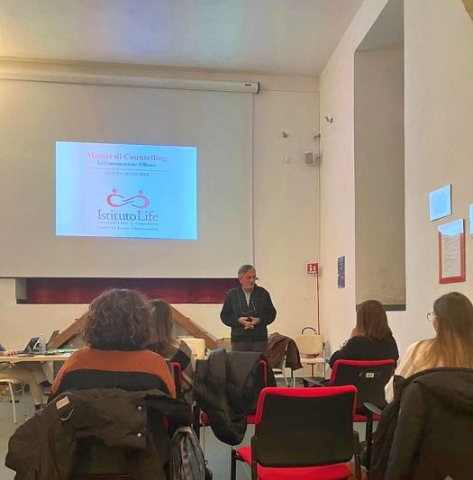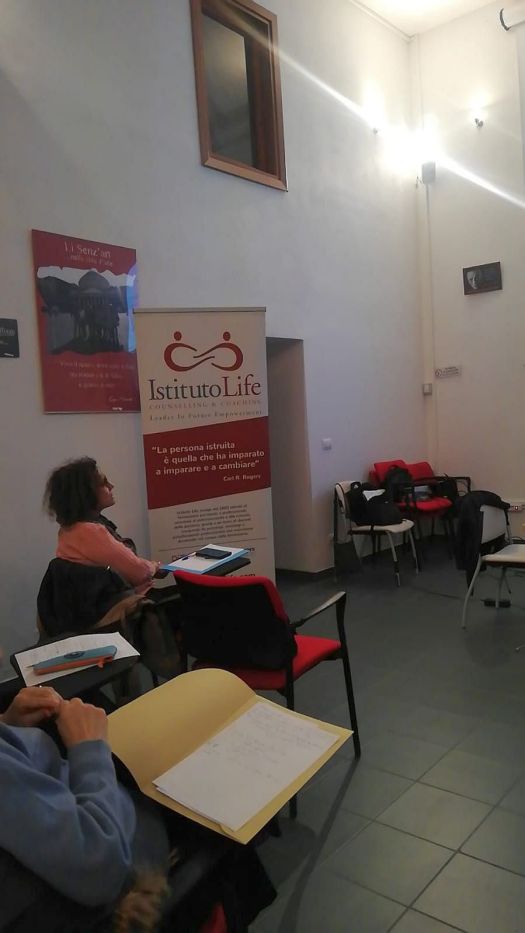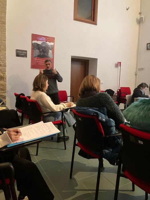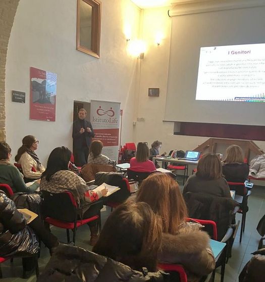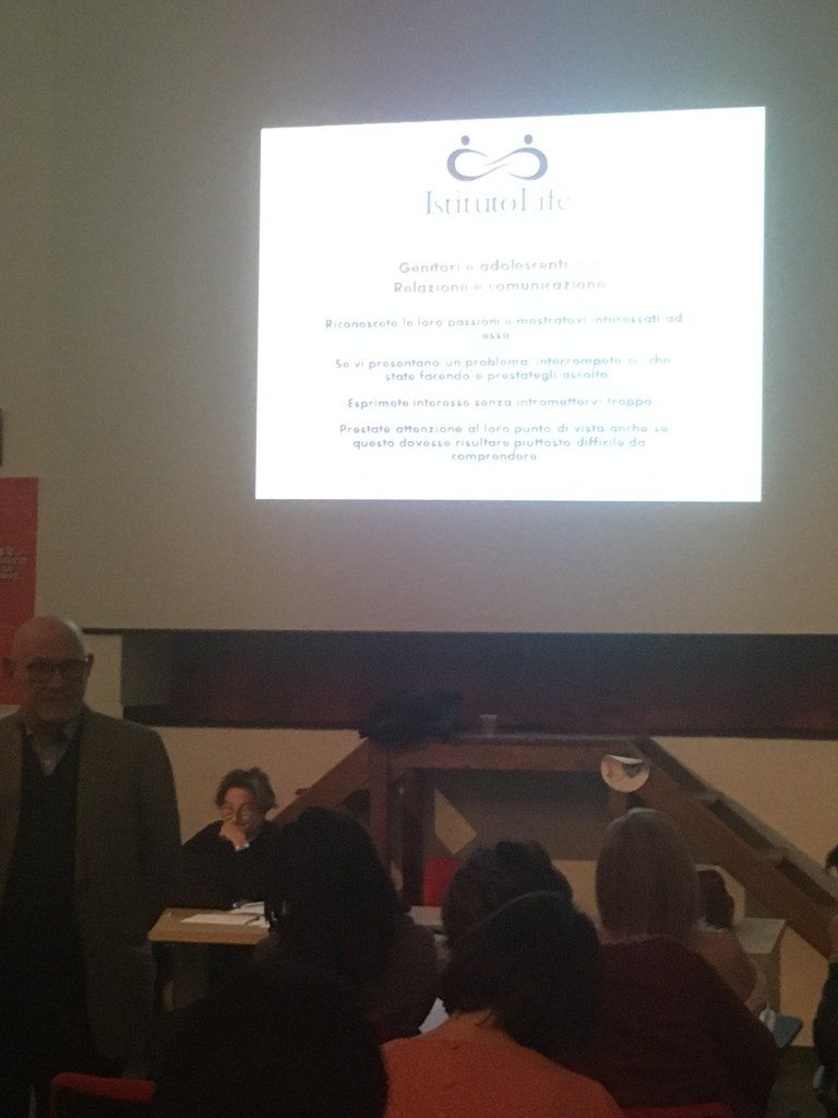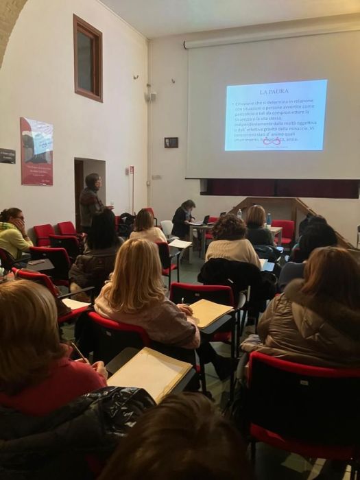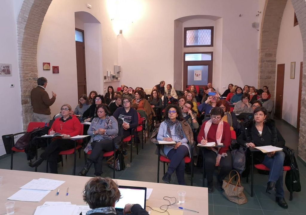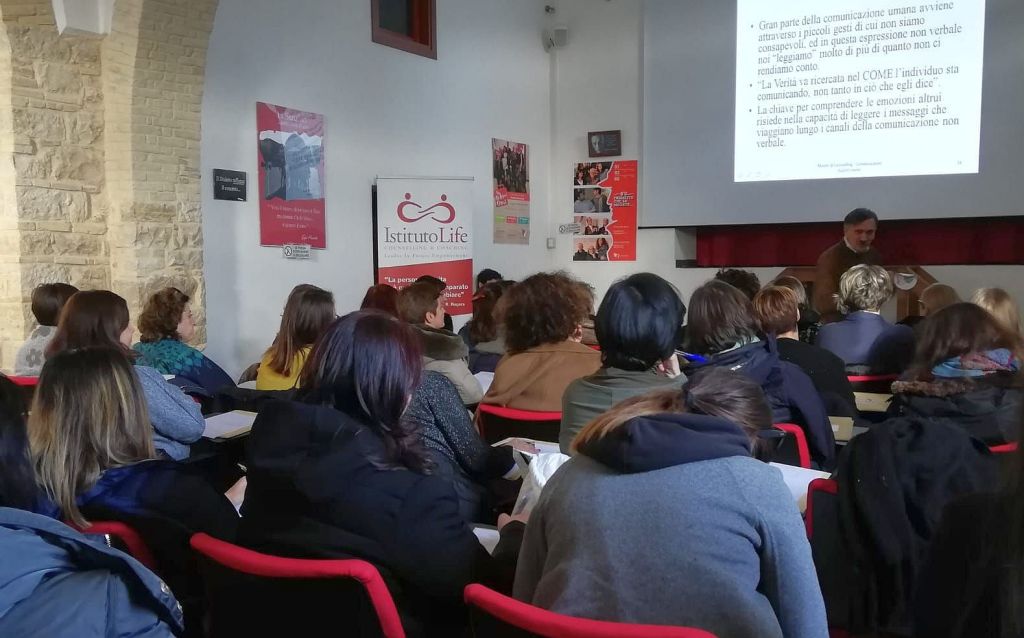 ‘Relazione d’aiuto e rapporti genitori/figli nella scuola della società complessa’, seconda giornata di formazione; in aula, il dottor Luigi de Michele, psicoterapeuta e conduttore di gruppo