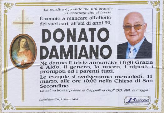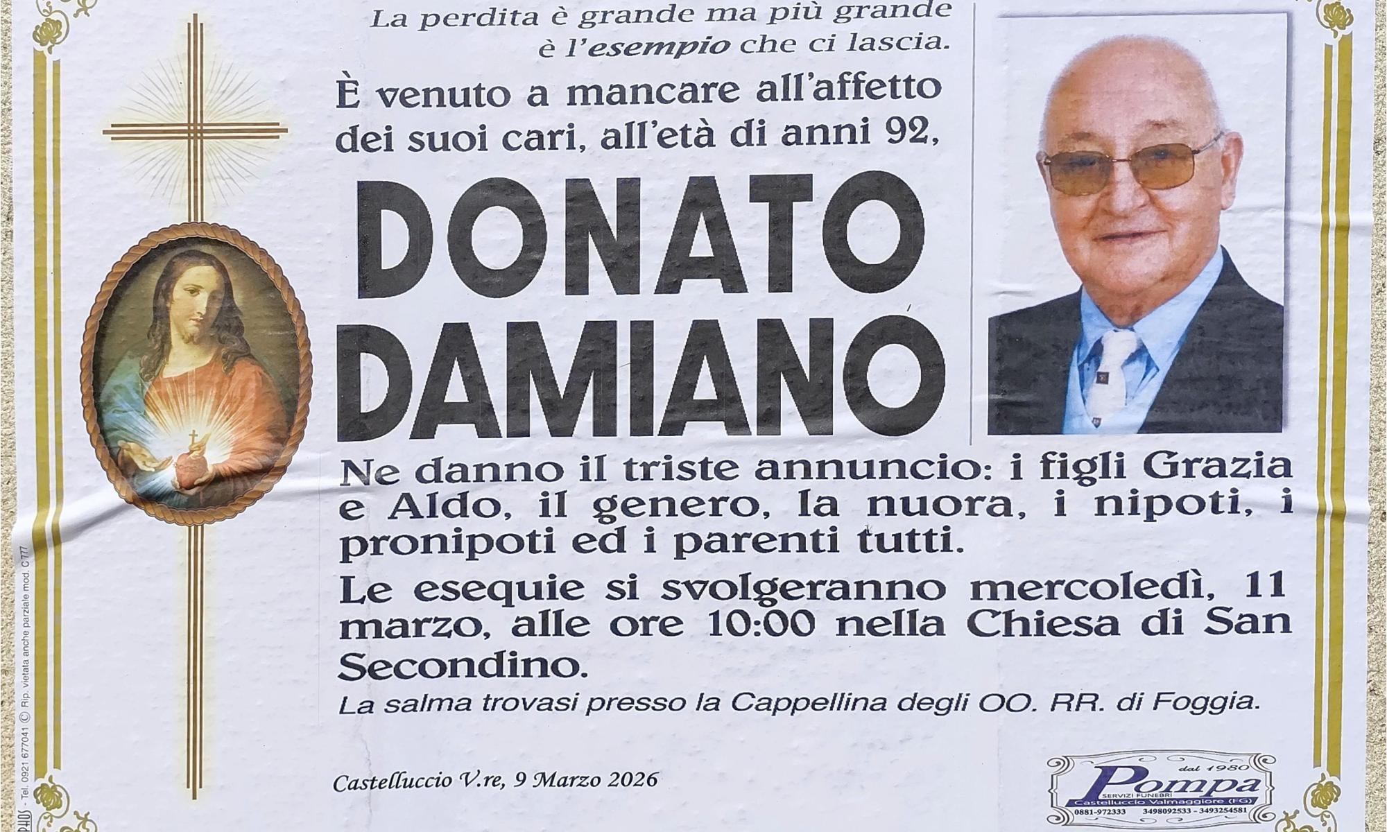 E’ venuto a mancare Donato Damiano, ex direttore del Circolo didattico ‘Antonio Salandra’ di Troia. Una lunga carriera dedicata all’insegnamento, svolto anche a Castelluccio Valmaggiore, dove il direttore Damiano ha prestato servizio durante il periodo iniziale della sua attività e, ancora oggi, è ricordato con affetto dai suoi alunni.