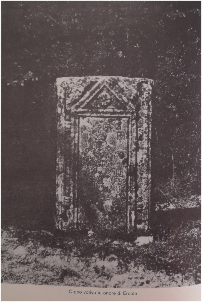 Il Sindaco di quel tempo D. Giuseppe Tango, cultore esimio di scienze e lettere, la reclamò, facendola collocare nel largo che precedeva la Chiesa Parrocchiale, ove attualmente si rattrova. Con l’scrizione, che nella lapidasi leggea ad occhio nudo, si trascrive l’interpretazione data, comunque questa non soddisfi pienamente; e quello che maggiormente ne costituisce il vuoto, non è corredata da alcun cenno illustrativo.