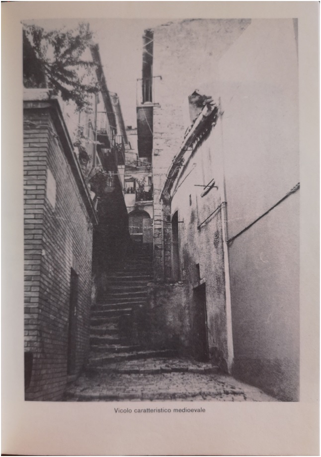 Si fa osservare: che le abitazioni di cinta non presentavano regolarità alcuna di allineamento; ma addentellato di costruzioni con sporgenze più o meno rimarchevoli, senza ordine e simmetria prestabilita. Dippiù: molte stradicciuole interne aveano comunicazioni speciali con l’esterno.